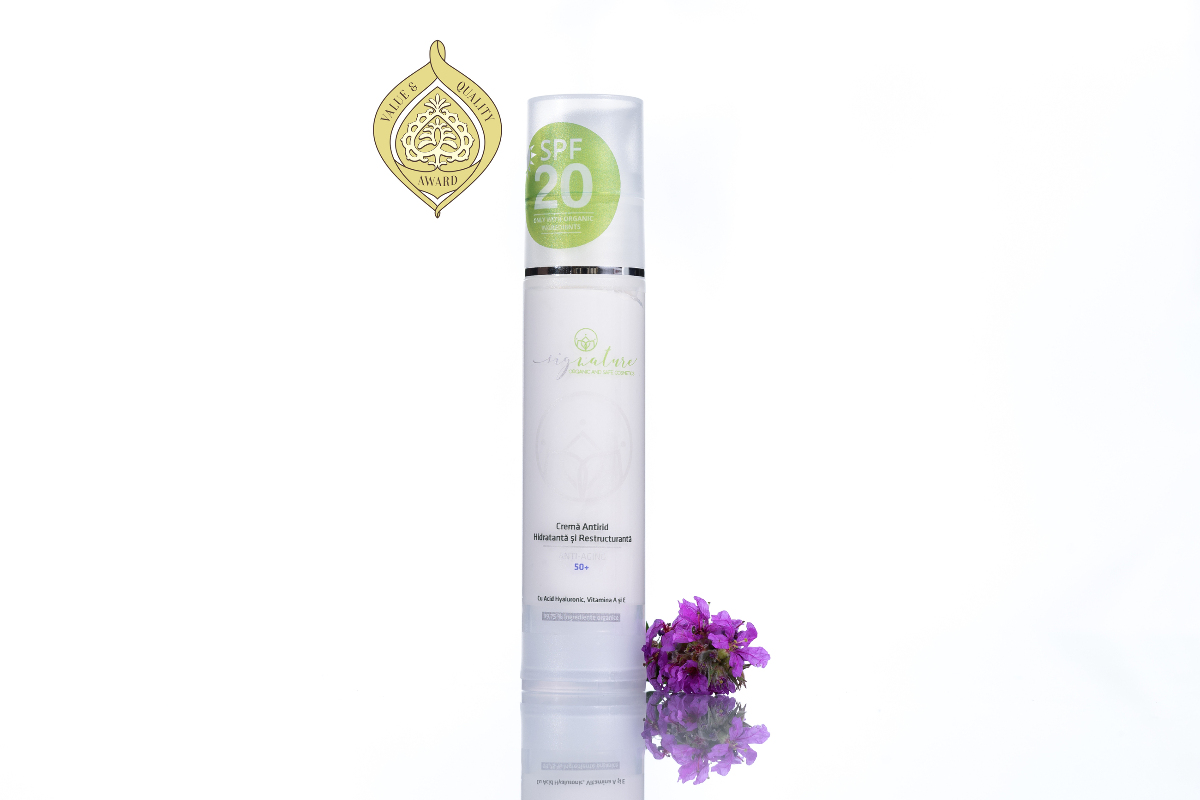 Este special conceput pentru persoanele de vârsta 50+. Crema noastră pune accent pe hidratarea tenului și protecția colagenului prin intermediul vitaminelor. Uleiurile organice de Inca Inchi și de migdale dulci calmează și hidratează tenul, iar subtanțele active cu studii clinice, au efect de lifting și anti-aging (anti-îmbătrânire).